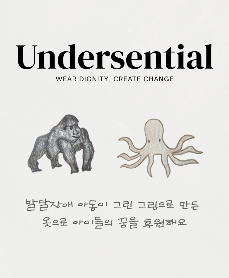 언더센셜은 이 창작물을 단순한 장식이 아닌 하나의 이야기이자 디자인으로 존중하며, 비장애인과 장애인 모두가 자연스럽게 입을 수 있는 티셔츠로 완성합니다. 이 티셔츠는 사람들의 일상 속에 스며들어 발달장애에 대한 인식을 개선 하고자 합니다.